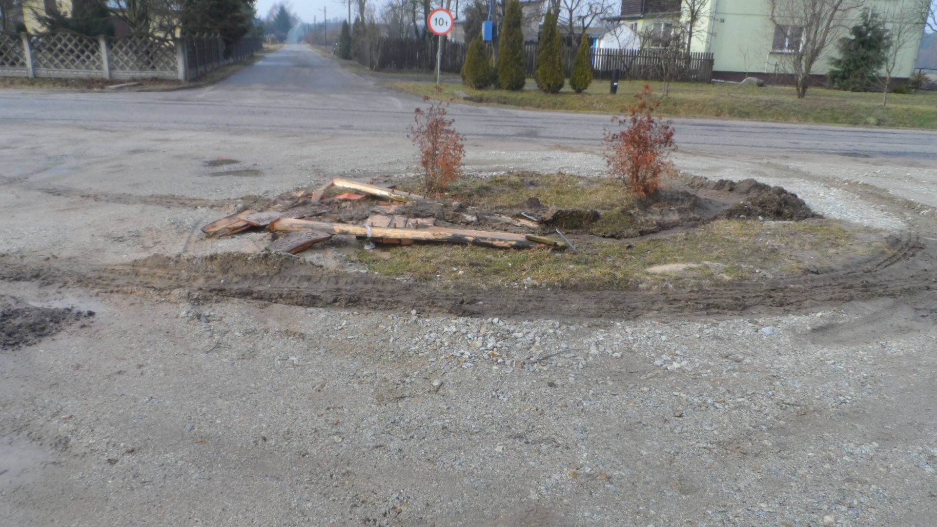 W piątek 19 lutego 2015 roku około 21.30 kierujący pojazdem ciężarowym (ciągnikiem siodłowym z naczepą) podczas manewru zawracania na pętli autobusowej w Dziadowicach - Folwark staranował tablice informacyjną. Owa tablica informacyjna to dębowy ręcznie wykonany witacz. Dzięki czujności naszego mieszkańca oraz szybkiej reakcji udało się ustalić numery rejestracyjne pojazdu. Jeszcze tego samego wieczora zdarzenie zostało zgłoszone na policję.