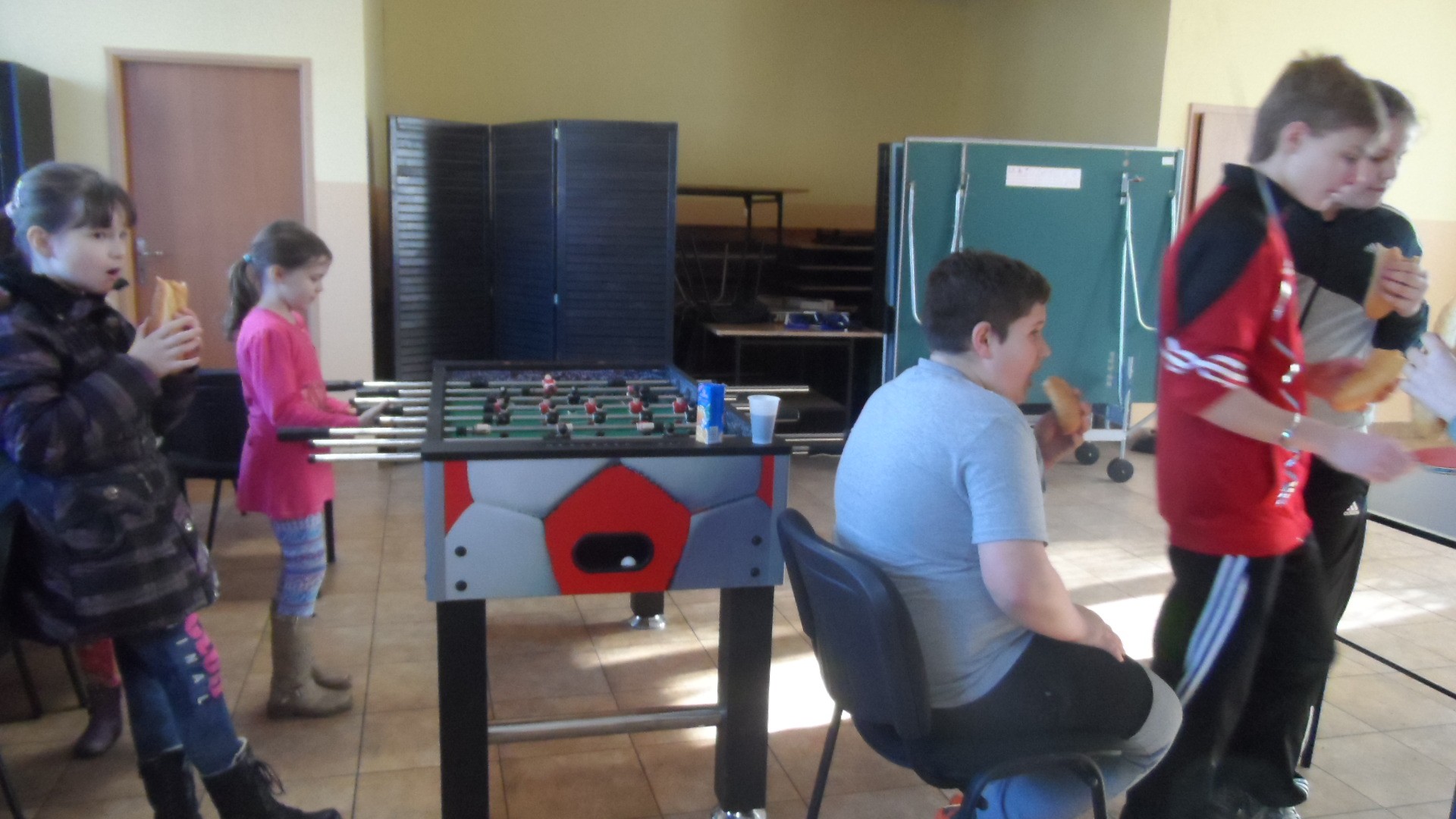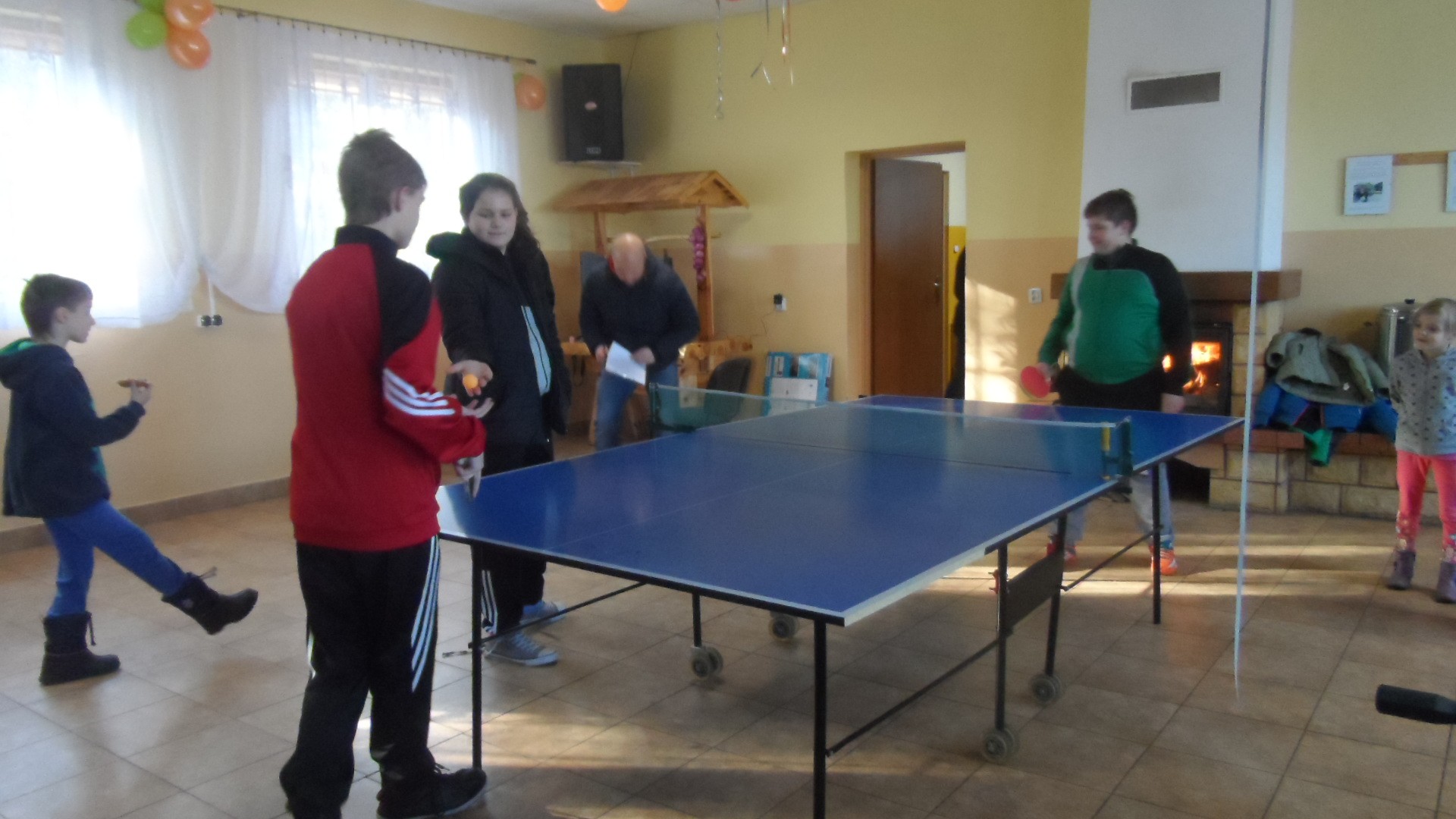 Jak co roku podczas ferii zimowych w naszej świetlicy odbył się dzień gier i zmagań sportowych dla naszych dzieci. Do współpracy zaprosiliśmy Ośrodek Sportu i Rekreacji w Malanowie. Panowie przygotowali masę ciekawych gier i zabaw dla uczestników ferii. Były zawody gry w tenisa stołowego, piłkarzyki i dart. Wszyscy uczestnicy otrzymali dyplomy, a zwycięzcy poszczególnych gier puchary. Dzięki hojności Państwa Ogrodowczyków i Państwa Kubackich z Malanowa dzieci po zmaganiach sportowych zaproszone zostały na poczęstunek - były zapiekanki, hot-dogi i pączki. Serdecznie dziękujemy w imieniu dzieci i ich rodziców OSiR-owi z Malanowa oraz Państwu Ogrodowczykom i Kubackim za wsparcie imprezy. Zapraszamy już teraz na zbliżający się Dzień Dziecka w naszej miejscowości.