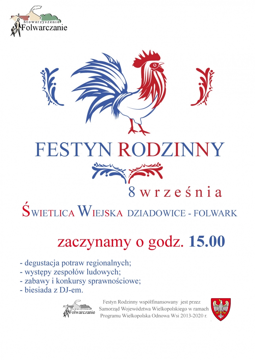 Festyn Rodzinny współfinansowany był ze środków "Samorządu Województwa Wielkopolskiego w ramach Programu Wielkopolska Odnowa Wsi 2013-2020".