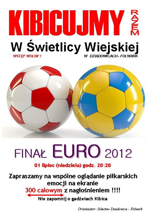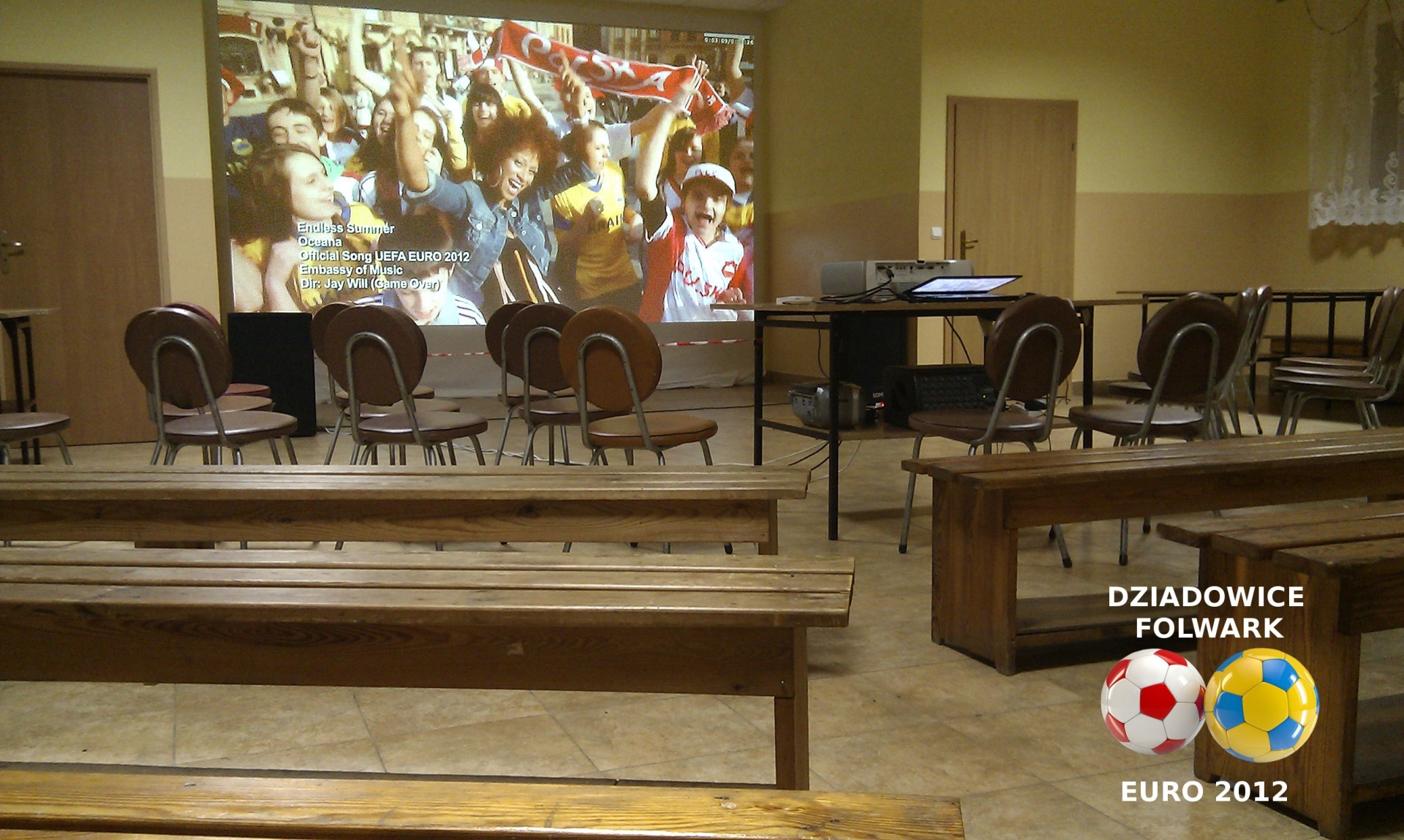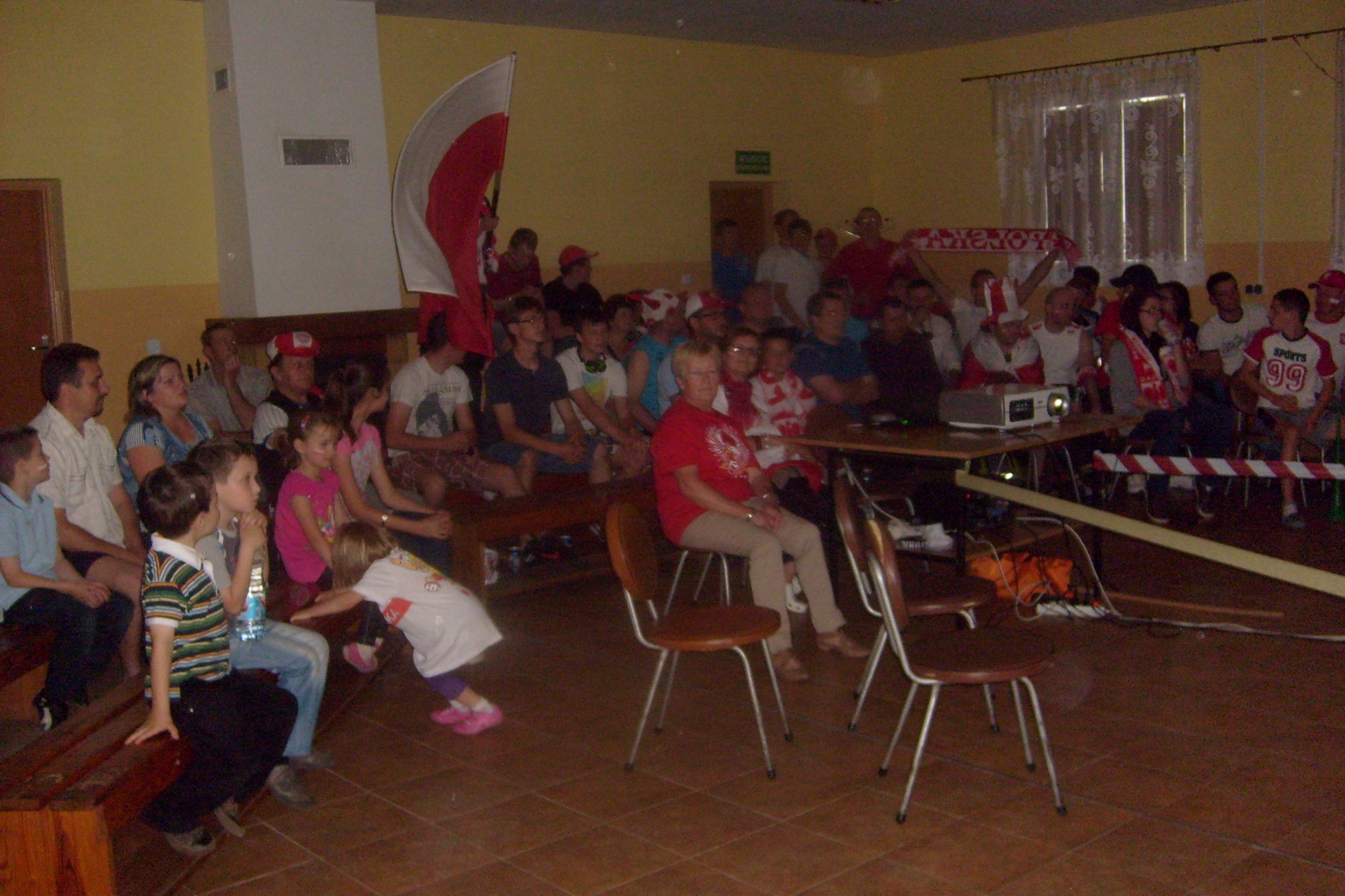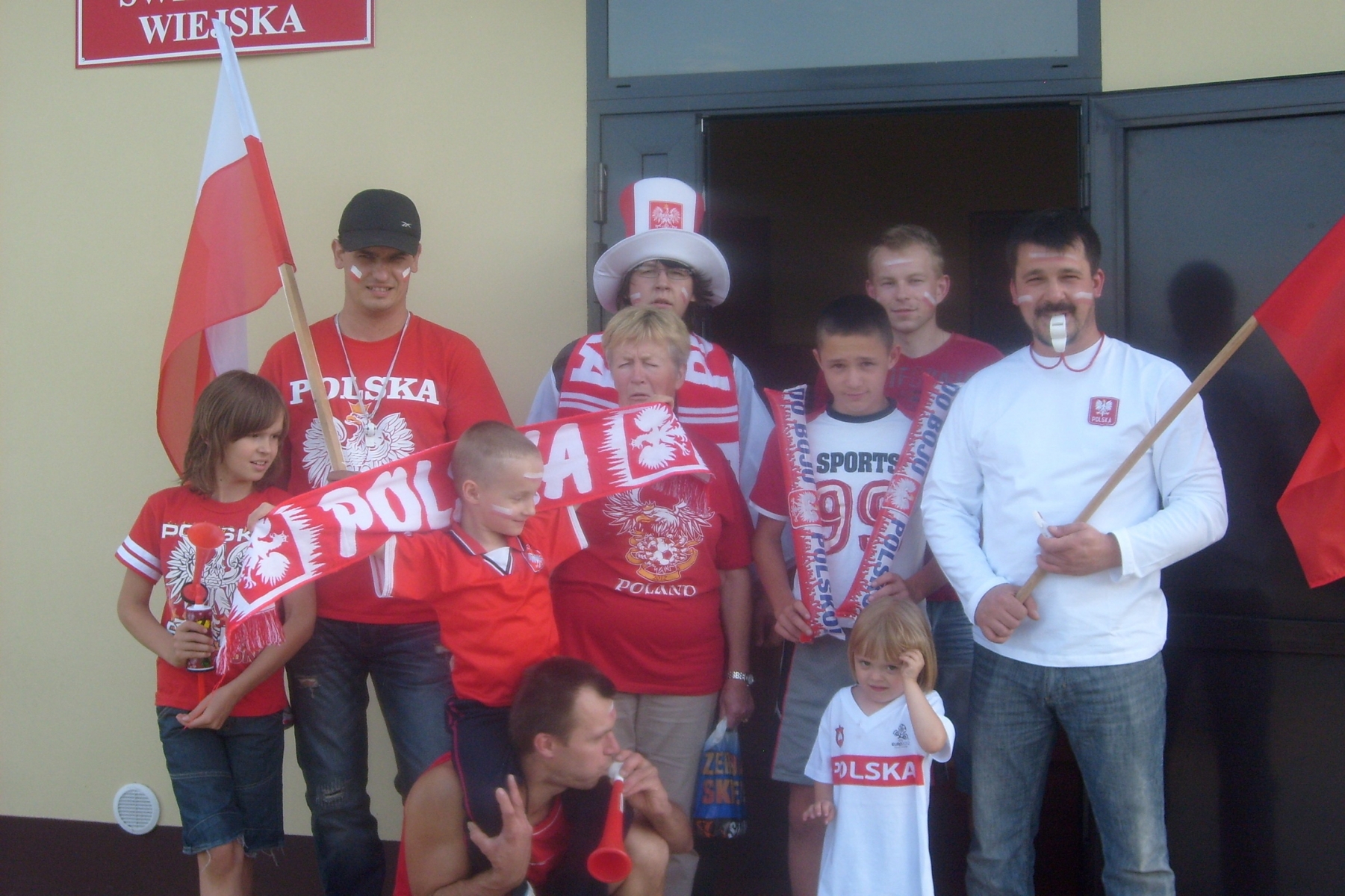 Licznie zgromadzeni mieszkańcy naszej wsi oraz goście z sąsiednich Dziadowic, Bibianny i nie tylko mogli oglądać ceremonie otwarcia Euro oraz pierwszy i kolejne mecze naszych rodaków na dużym 300 calowym telebimie. Jednoczący się w dopingu naszej drużyny mieszkańcy wsi nie zapomnieli o atrybutach kibica- były koszulki z orłem, trąbki, flagi i barwy narodowe na twarzach.