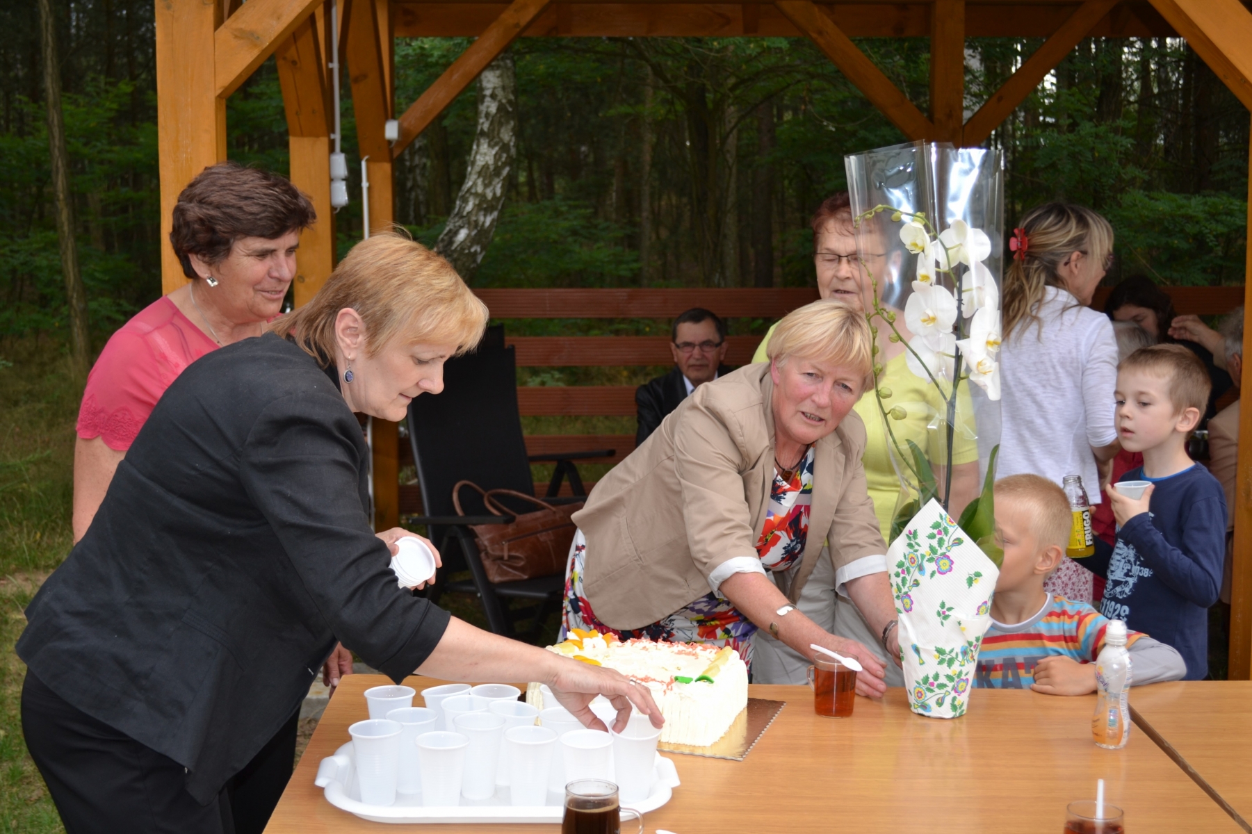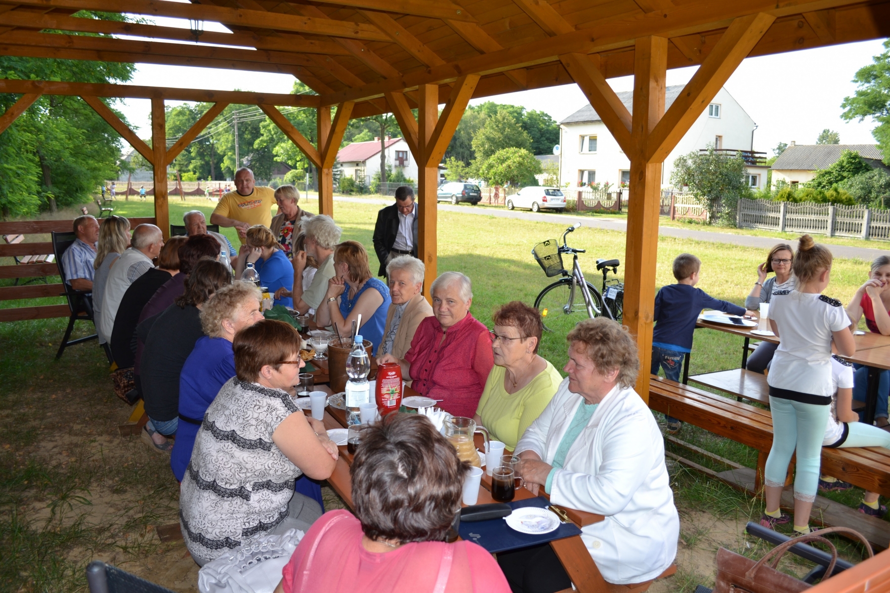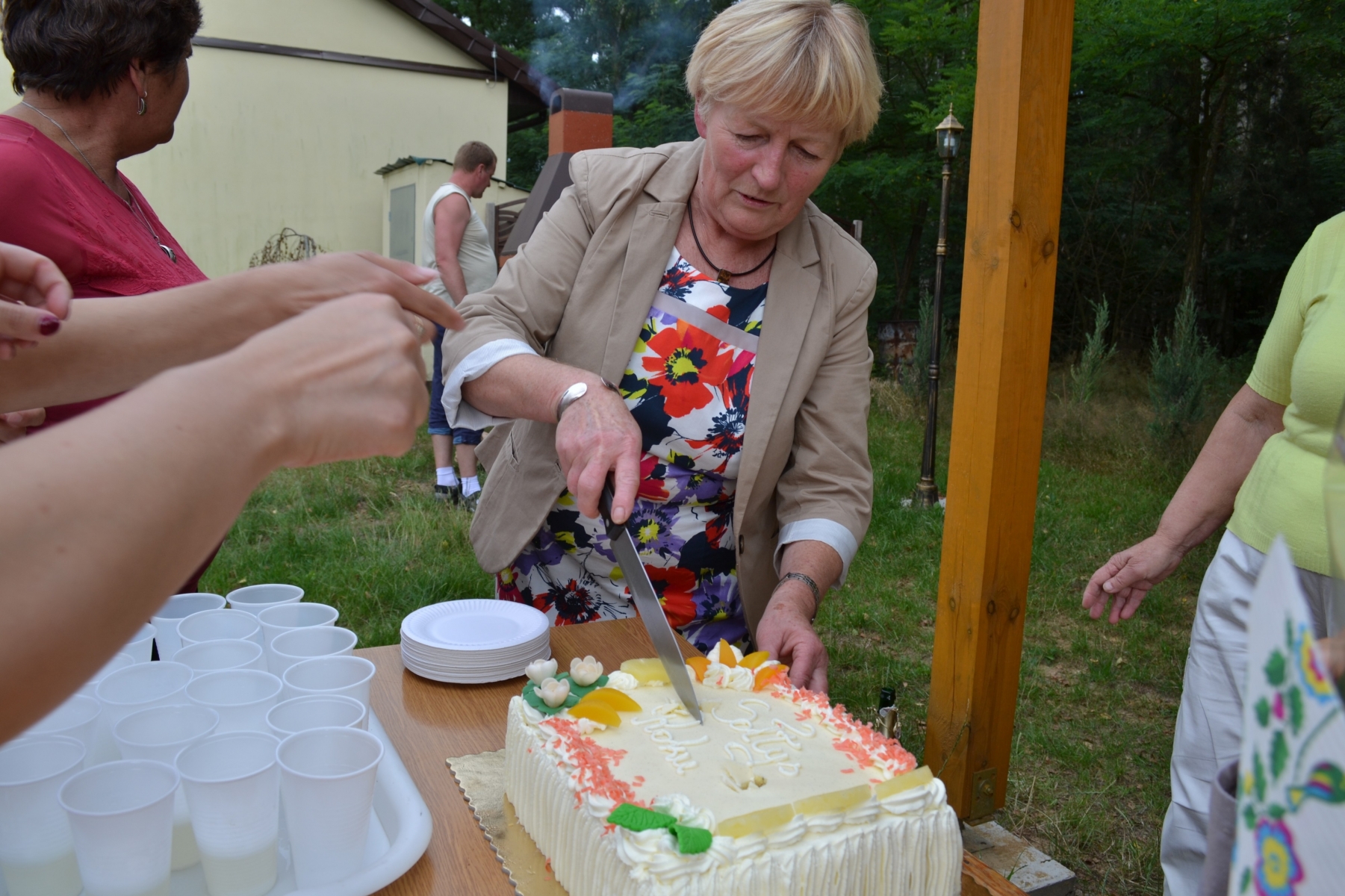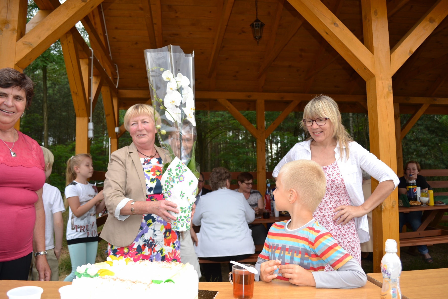 Dalsza część spotkania to niespodzianka jaką mieszkańcy przygotowali Sołtysowi Roku - był tort, kwiaty, szampan oraz gromkie „sto lat”. Pani Bożena podziękowała mieszkańcom za zaangażowanie w prace na rzecz wsi i integracje społeczną. Zachęcała do dalszej pracy, która prowadzi do sukcesów i przeobrażań najbliższego otoczenia. Spotkanie zakończyło się grillowaniem i miłym biesiadowaniem na świeżym powietrzu. Dla dzieci byłą wata cukrowa i zabawy sportowe.