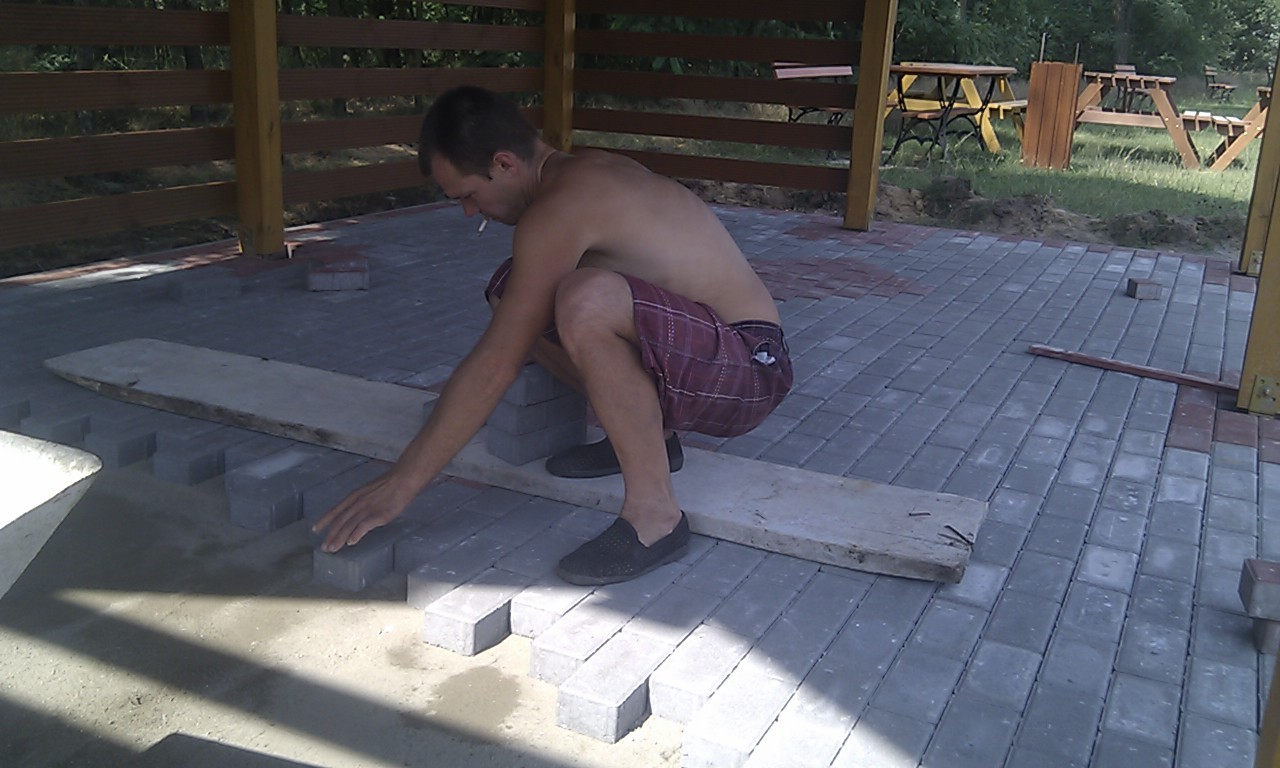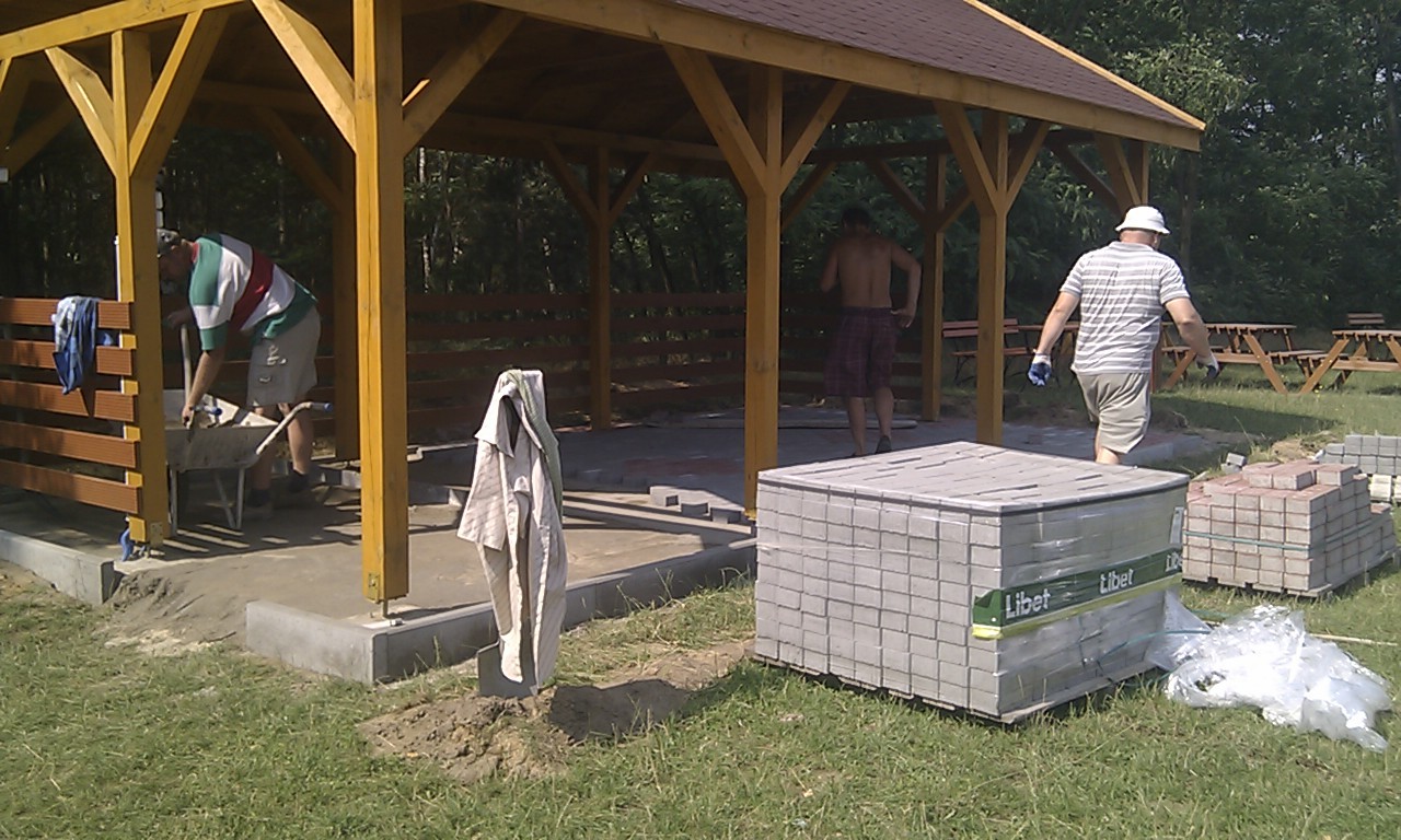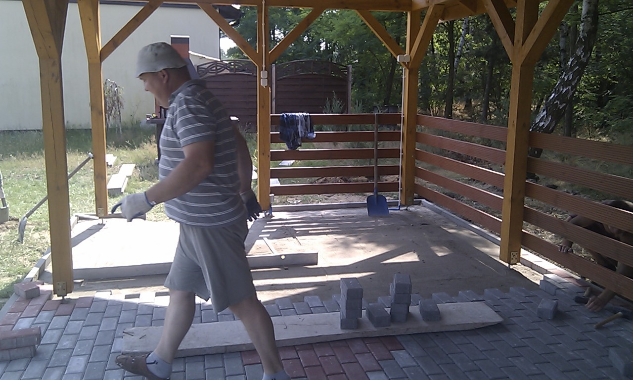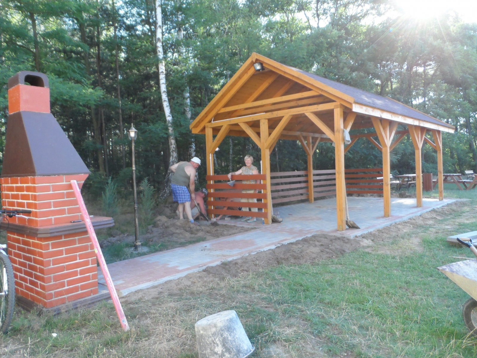 Środki Z funduszy sołeckiego na 2014 posłużyły do zakupu kostki brukowej oraz innych niezbędnych materiałów do wybrukowania przestrzeni pod wiatą festynowo - biesiadną w naszej miejscowości. Dzięki zapałowi oraz dużemu zaangażowaniu grupy mieszkańców, którzy sami zaoferowali swoją pracę jako wkład własny do przedsięwzięcia nasza altana na solidną i estetyczną podłogę. W imieniu własnym oraz mieszkańców dziękuję za pracę i poświęcony czas Panom: