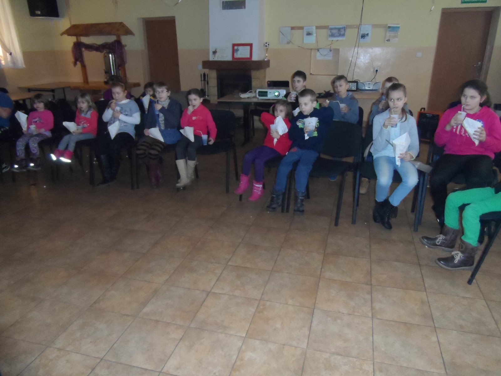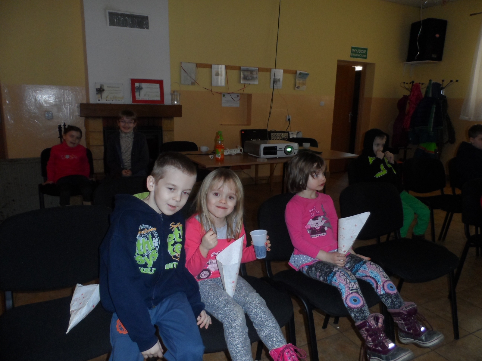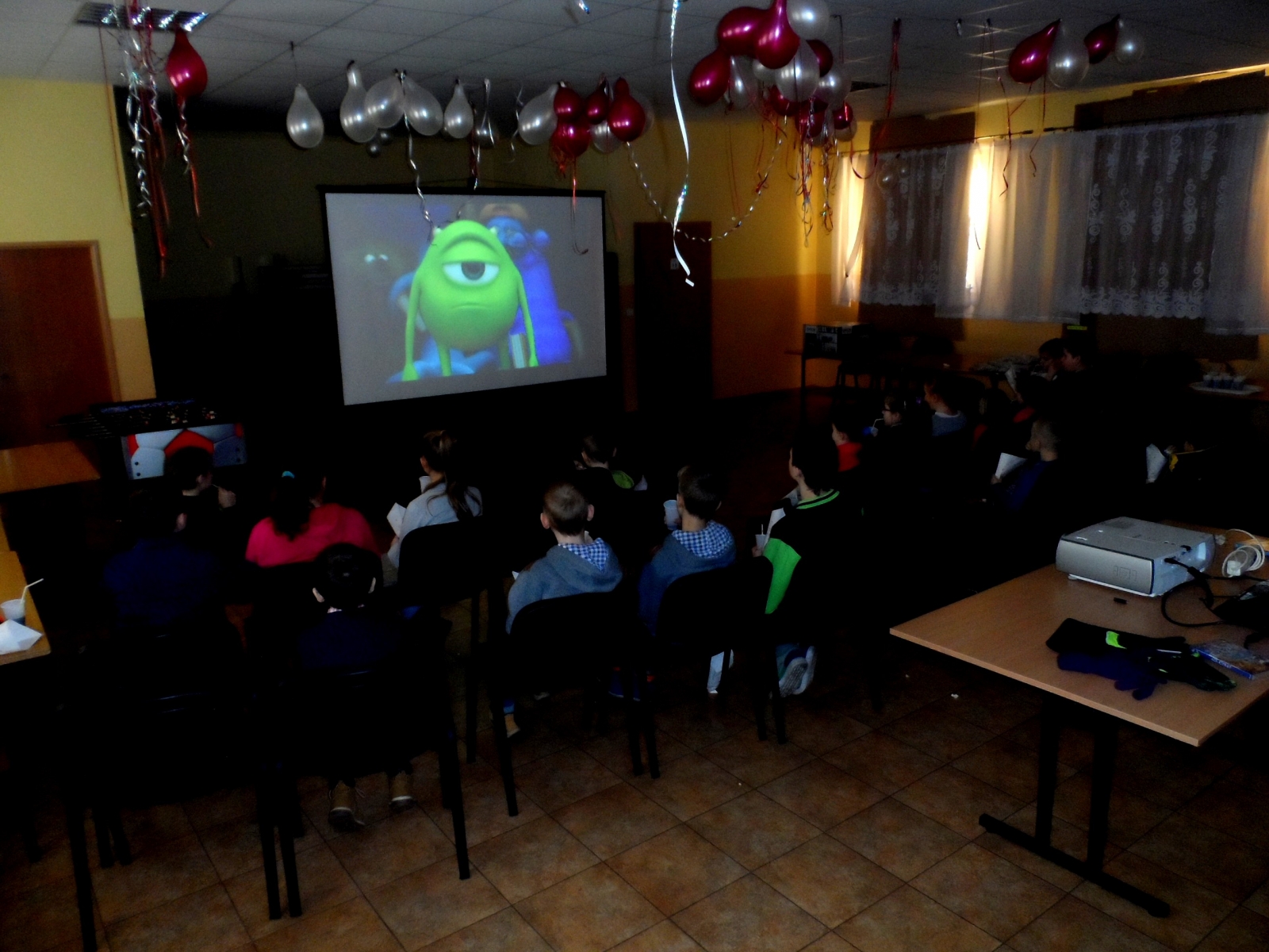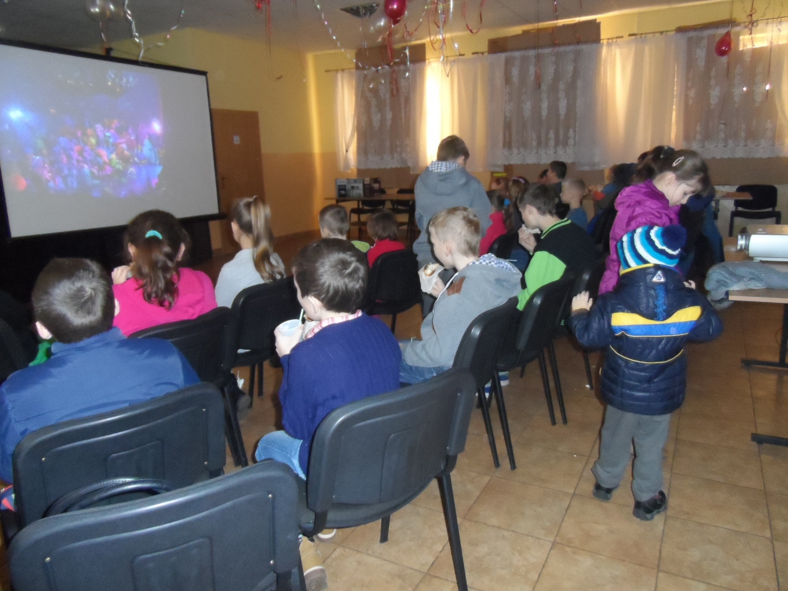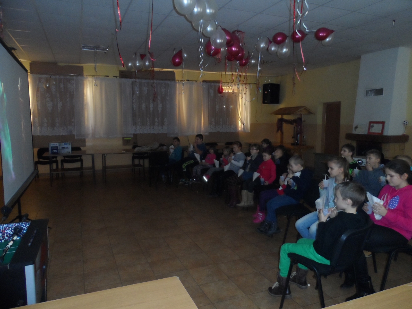 Pierwszy dzień upłynął naszym pociechom na wspólnym oglądaniu bajek. Atmosferę iście kinową oprócz dużego ekranu i wyświetlanych na nim bajkom zapewniały również serwowany popcorn i Cola oraz mnóstwo pysznych słodkości.