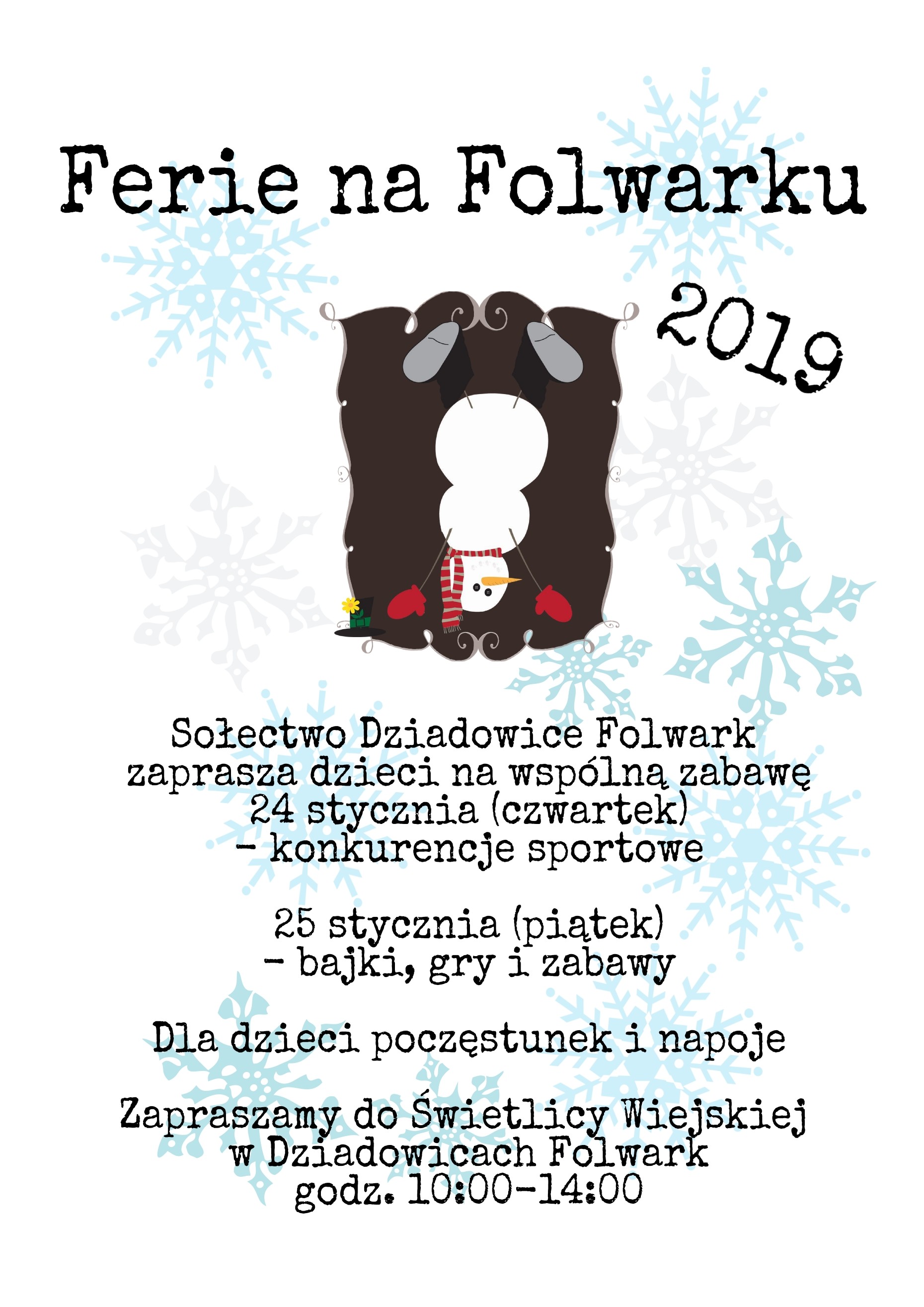 Jesteś tutaj: Strona główna » Dziadowice-Folwark » Aktualności » Zapraszamy na Ferie na Folwarku 2019