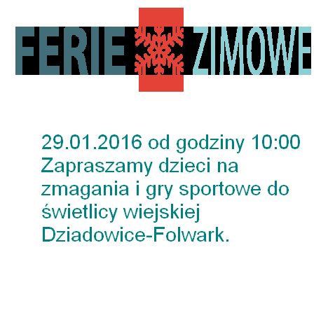 Jesteś tutaj: Strona główna » Dziadowice-Folwark » Aktualności » ZAPROSZENIE NA FERIE ZIMOWE